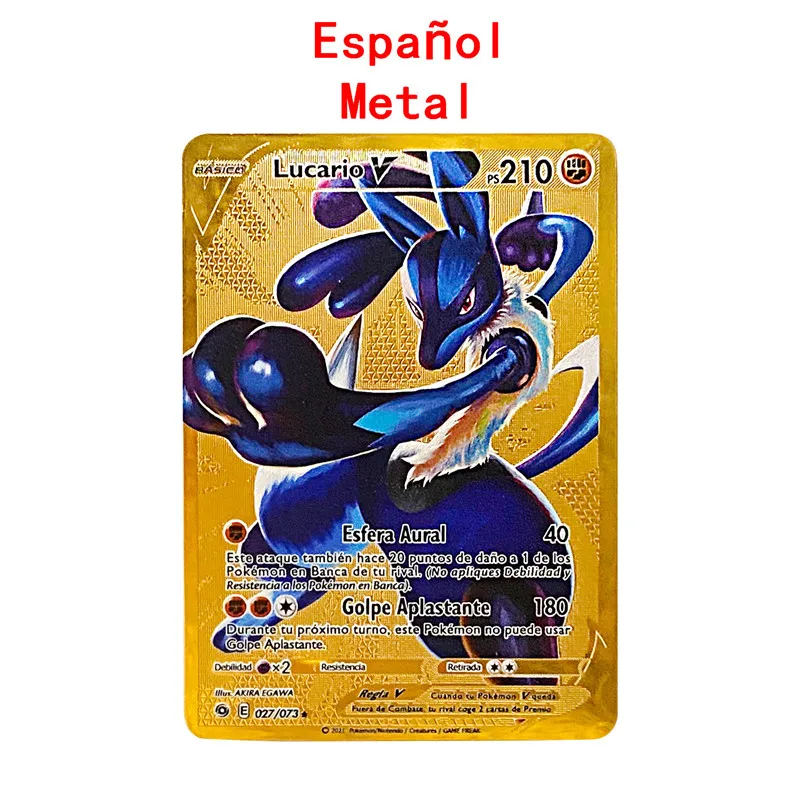 קנו דמויות פעולה New25th Pikachu Spanish Pokemon Metal Charizard Card V Vmax Original Mewtwo Umbreon Gold Game Collection Cards Gift Toy